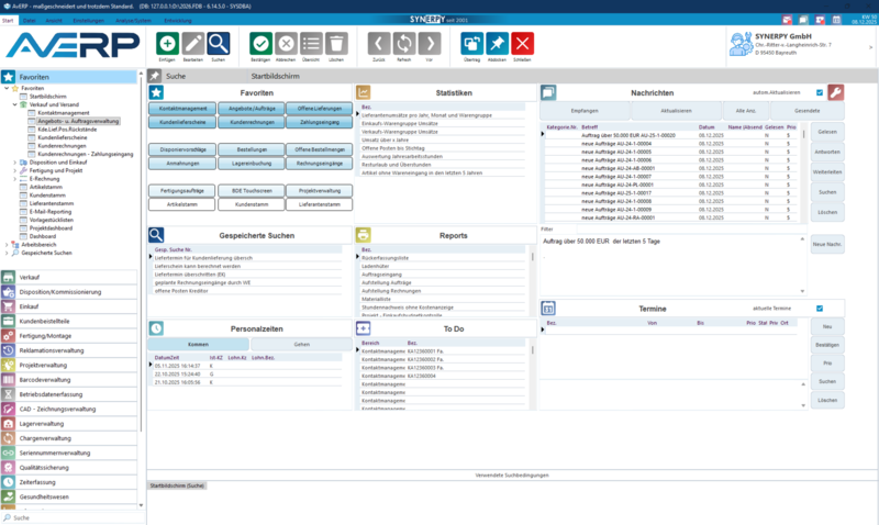 Das neue AvERP 2026 Release steht zum Download bereit! AvERP 2026 überzeugt durch eine neue moderne Oberfläche mit vielen neuen Design Akzenten. Zudem gibt es wieder zahlreiche neue Funktionen, u.a. zum Thema E-Rechnungen, Projektdashboard und E-Mail Reporting. AvERP Vision (Weboberfläche für AvERP) und KI Integration wurden von der SYNERPY GmbH vorgestellt und beeindrucken bereits jetzt im Funktionsumfang.